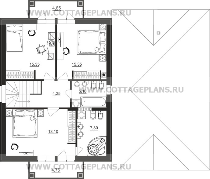 Проект дома 87-52 площадь 192.9 м2* из кирпича, керамических блоков, двухэтажный с мансардой, с шестью спальнями