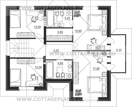 Проект дома 88-48 площадь 185.6 м2* из кирпича, керамических блоков, двухэтажный с мансардой, с пятью спальнями