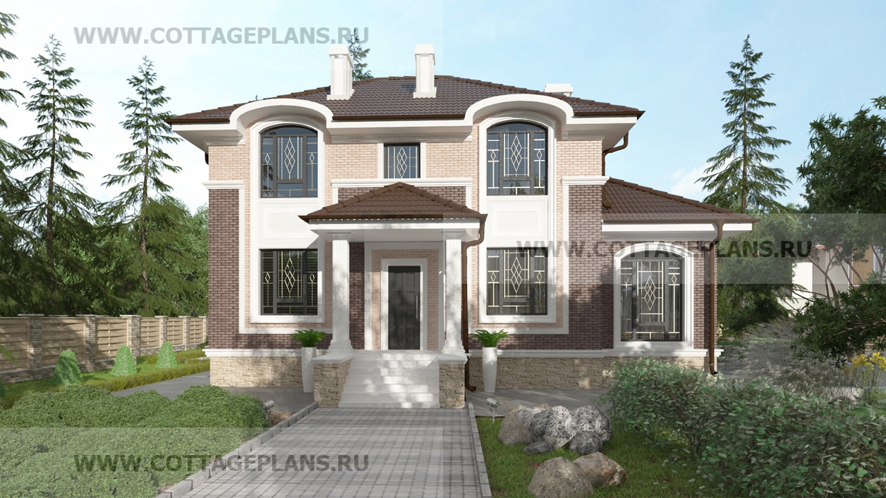 Проект дома 92-43 площадь 146.1 м2* из кирпича, керамических блоков, двухэтажный с полноценным вторым этажом, с пятью спальнями