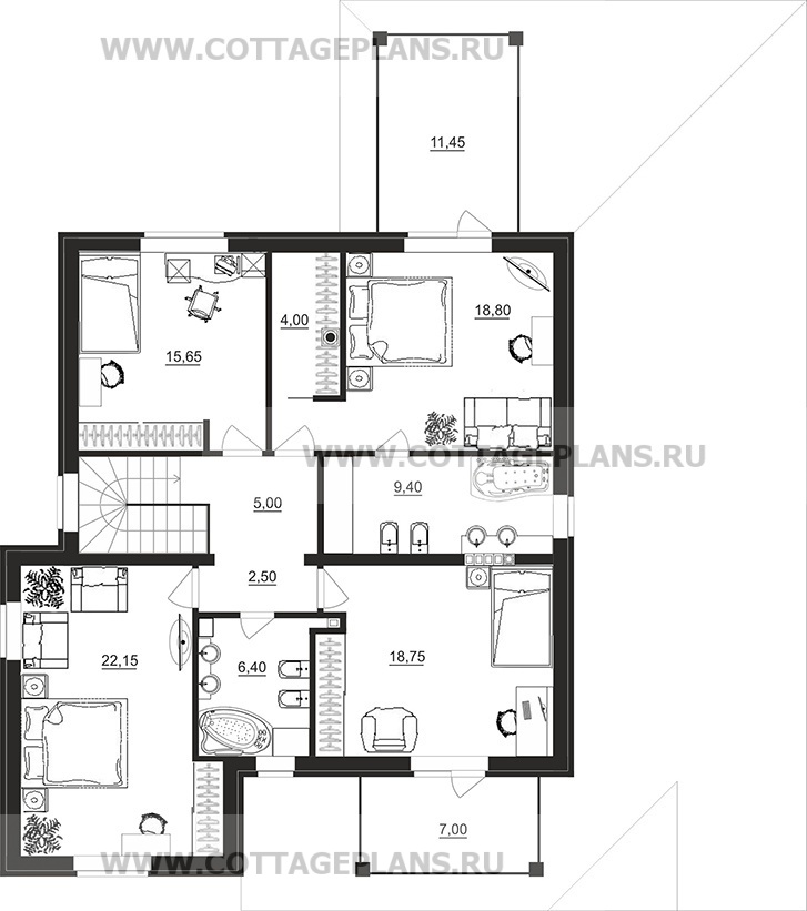 Проект дома 89-12 площадь 221.1 м2* из кирпича, керамических блоков, двухэтажный с полноценным вторым этажом, с пятью спальнями