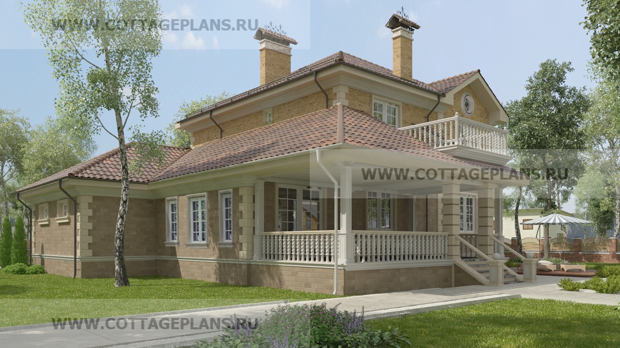 Проект дома 89-15 площадь 256.1 м2* из кирпича, керамических блоков, двухэтажный с полноценным вторым этажом, с пристроенным гаражом на 2 машины