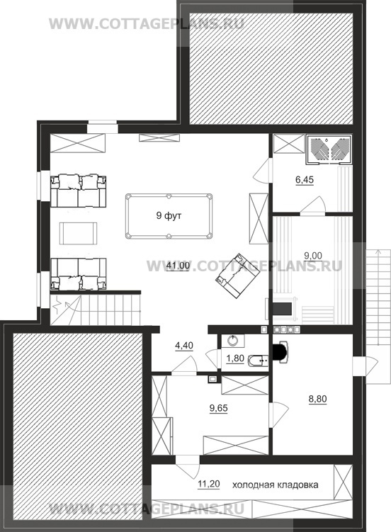 | Высота потолков цокольного этажа (мм.) | 2800 |