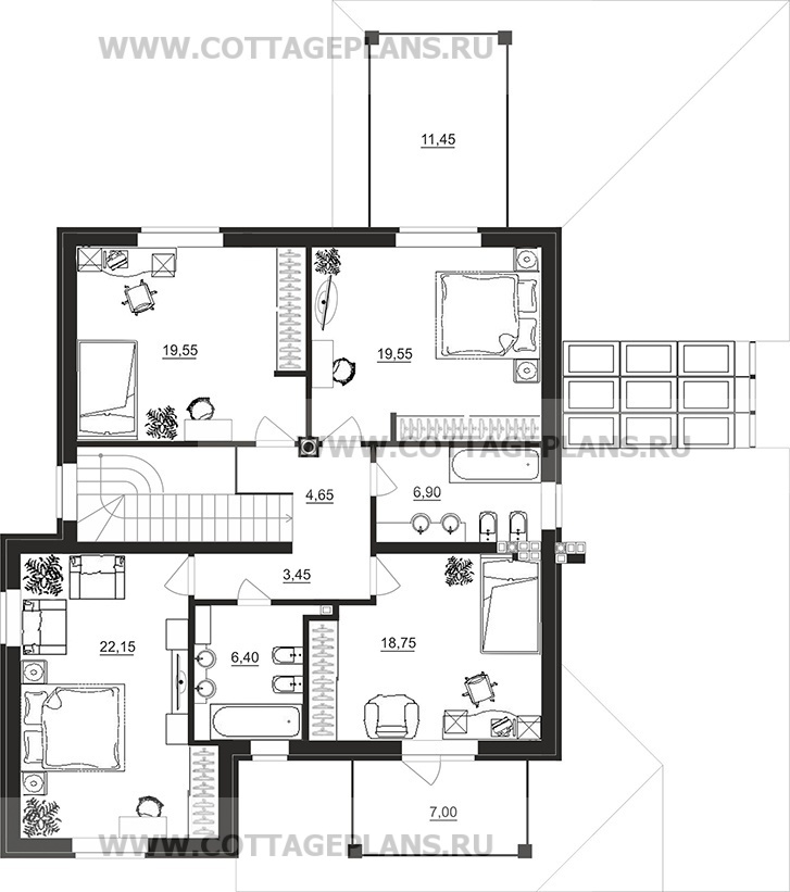 | Высота потолков мансардного этажа (мм.) | 3000 |