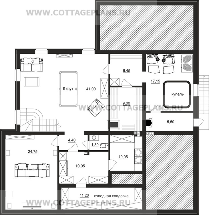 | Высота потолков цокольного этажа (мм.) | 2800 |