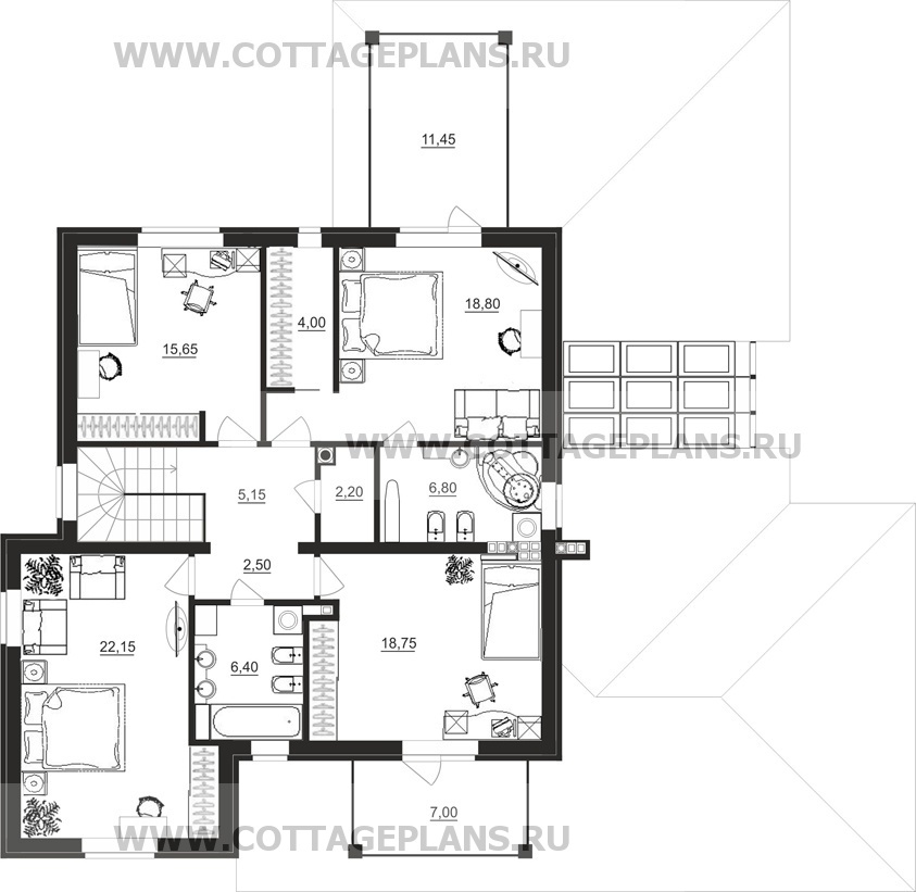 - 4 спальни с цоколем габариты 10 на 15