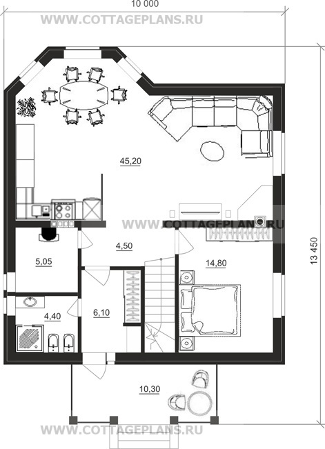 - общая площадь до 100 м2 с эркером