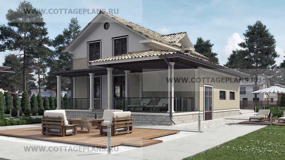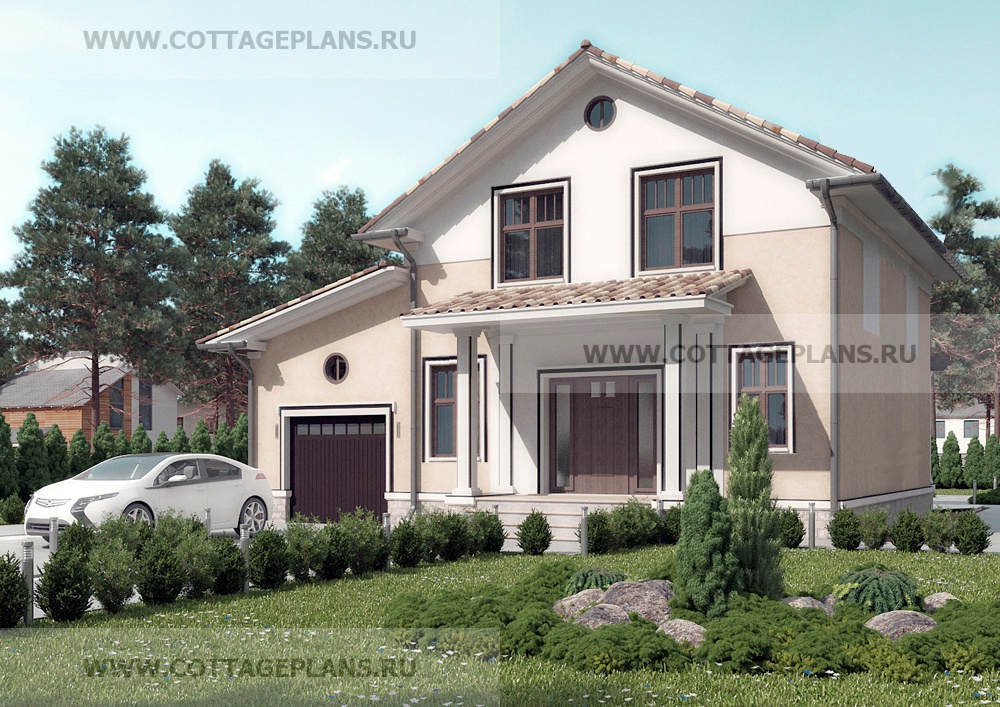 Проект дома 21-08 площадь 132.6 м2* из пеноблоков, газоблоков, двухэтажный с мансардой, с пристроенным гаражом на 1 машину