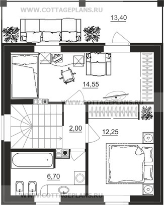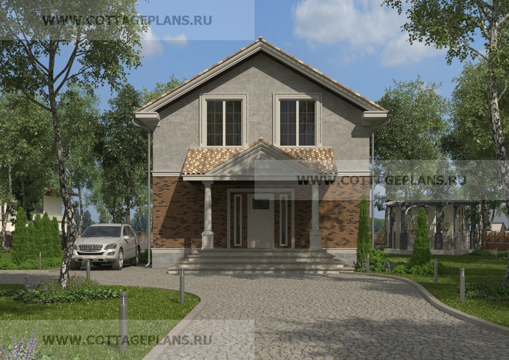 Проект дома 22-05 площадь 73.2 м2* из пеноблоков, газоблоков, двухэтажный с мансардой, с двумя спальнями