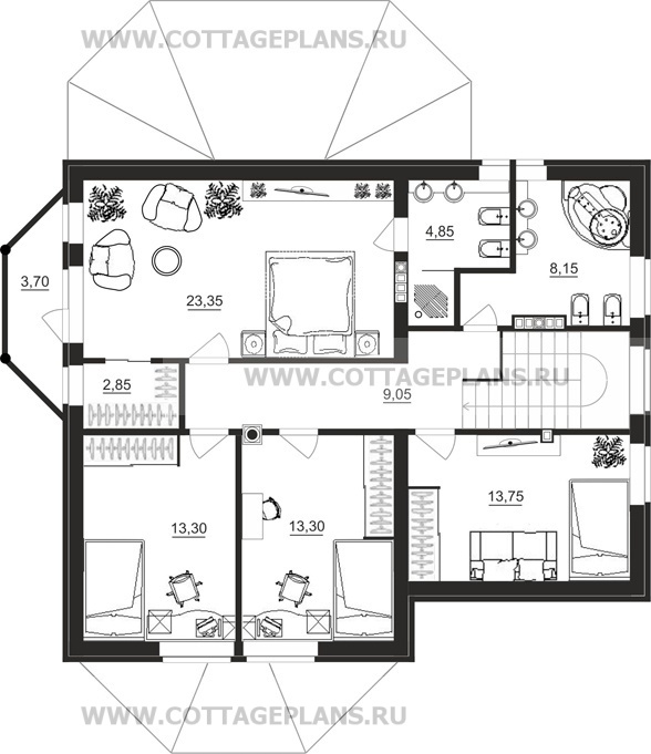 | Высота потолков мансардного этажа (мм.) | 3000 |