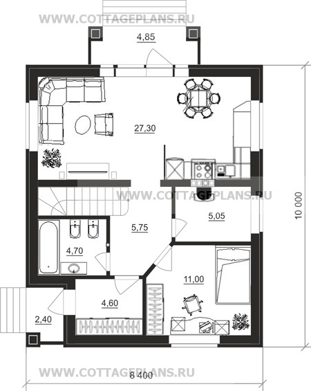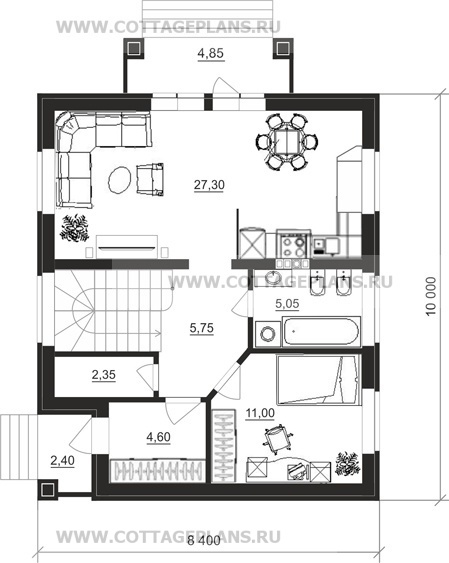 - общая площадь до 100 м2 с цоколем