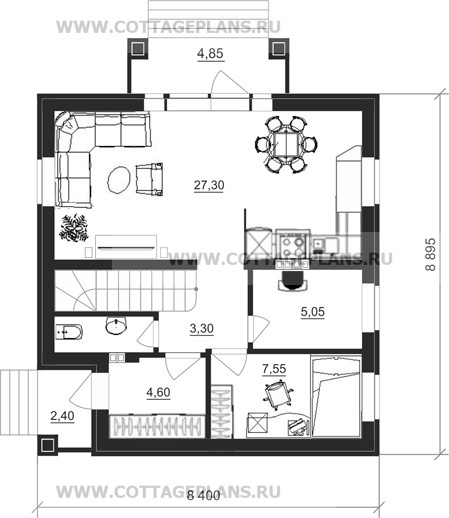 - общая площадь до 100 м2 с цоколем