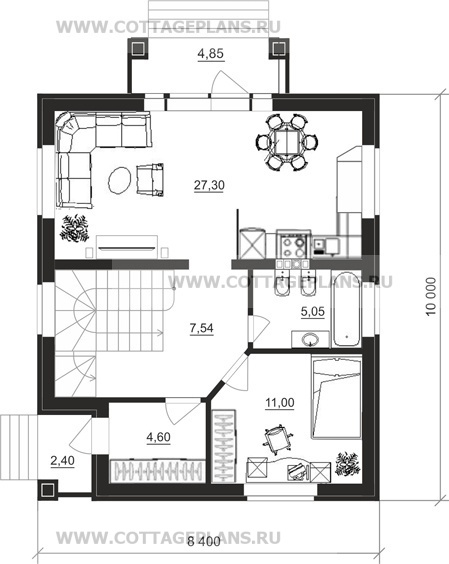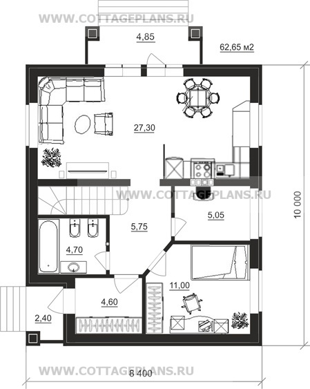- общая площадь до 100 м2 с цоколем