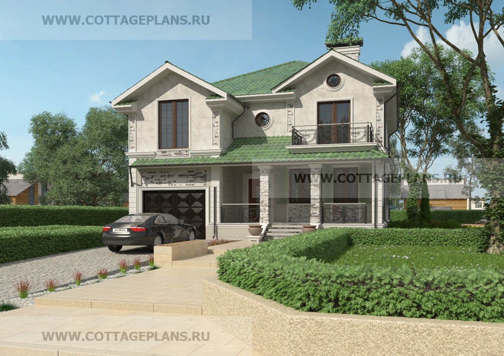 Проект дома 22-52 площадь 194.2 м2* из пеноблоков, газоблоков, двухэтажный с полноценным вторым этажом, с встроенным гаражом на 1 машину