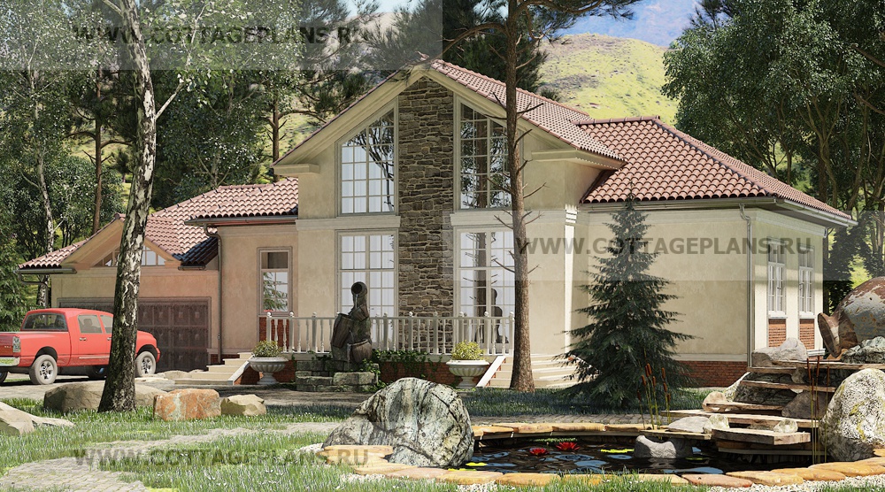 Проект дома 22-75 площадь 196.3 м2* из пеноблоков, газоблоков, двухэтажный с мансардой, с пристроенным гаражом на 2 машины