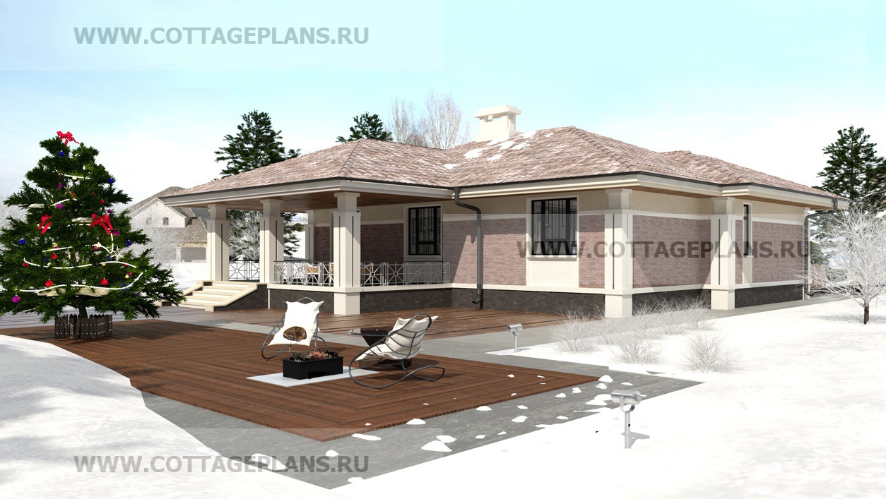 Проект дома 23-32 площадь 124.9 м2* из пеноблоков, газоблоков, одноэтажный, с пристроенным гаражом на 1 машину