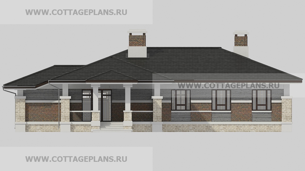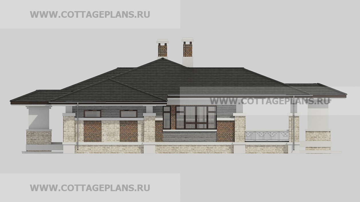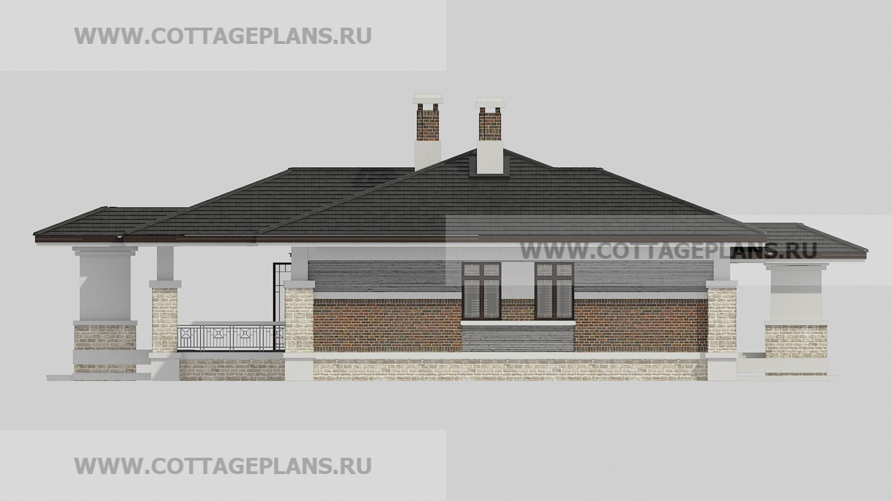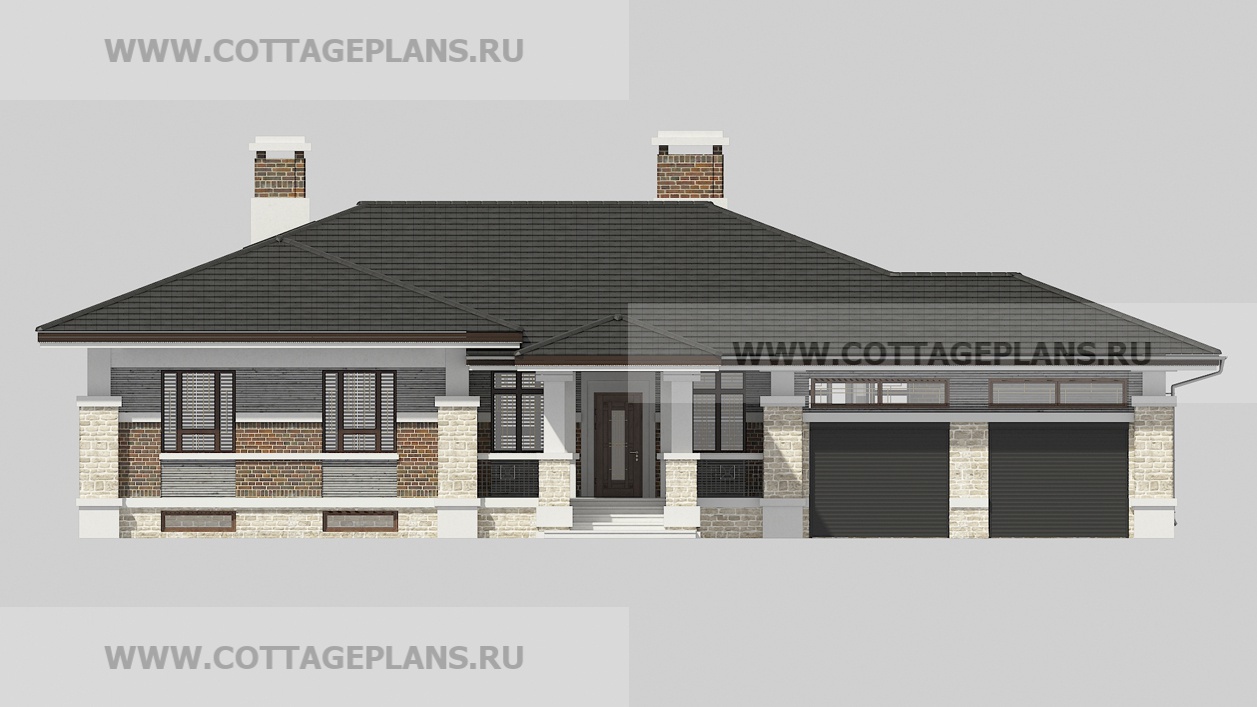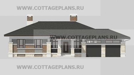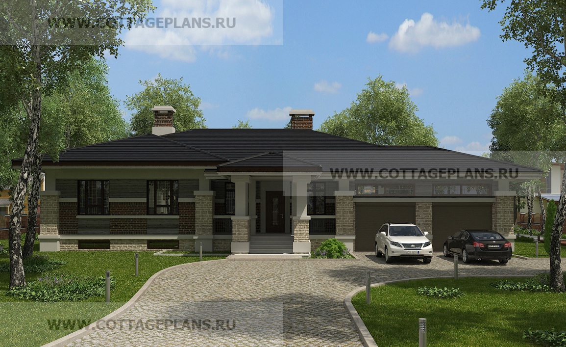 Проект дома 20-09 площадь 216.5 м2* из пеноблоков, газоблоков, одноэтажный, с пристроенным гаражом на 2 машины