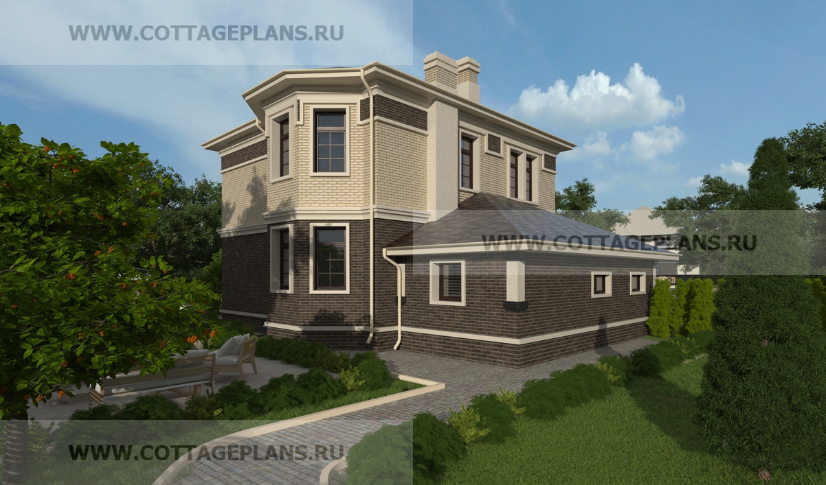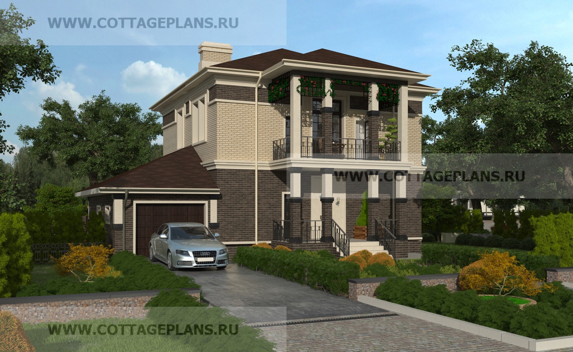 Проект дома 21-70 площадь 284.6 м2* из пеноблоков, газоблоков, двухэтажный с мансардой, с пристроенным гаражом на 1 машину