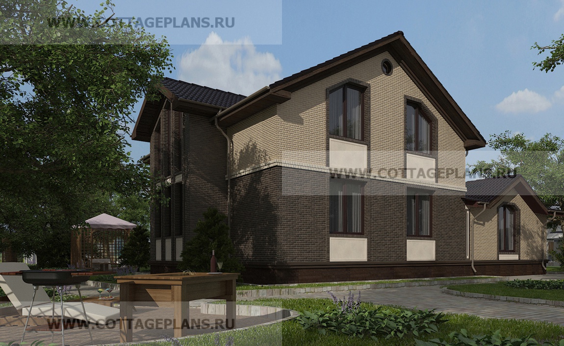 Проект дома 21-74 площадь 218.9 м2* из пеноблоков, газоблоков, двухэтажный с мансардой, с пристроенным гаражом на 2 машины