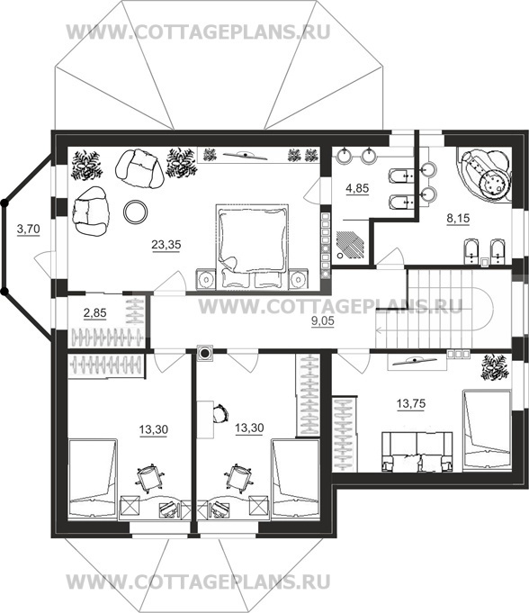 | Высота потолков мансардного этажа (мм.) | 3000 |