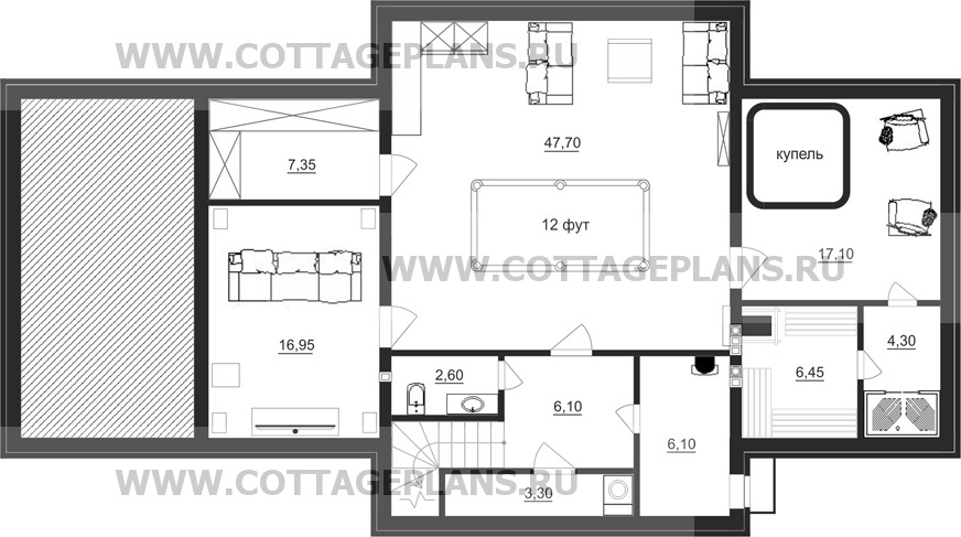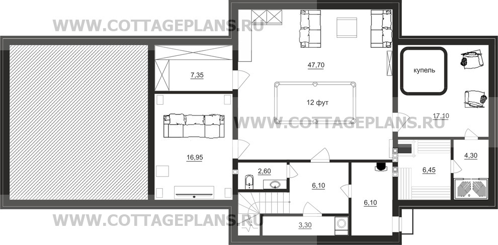 | Высота потолков цокольного этажа (мм.) | 2800 |