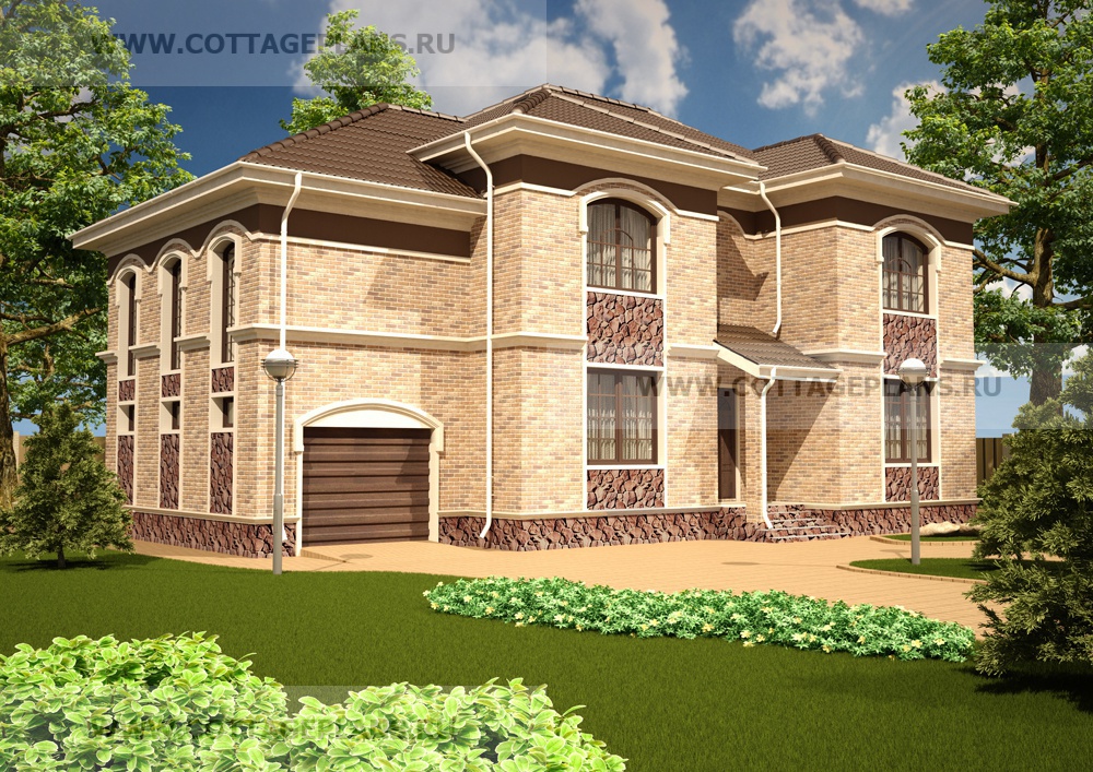 Проект дома 22-33 площадь 237.1 м2* из пеноблоков, газоблоков, двухэтажный с полноценным вторым этажом, с встроенным гаражом на 1 машину