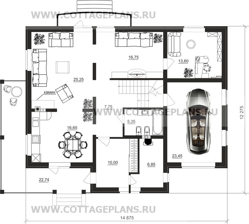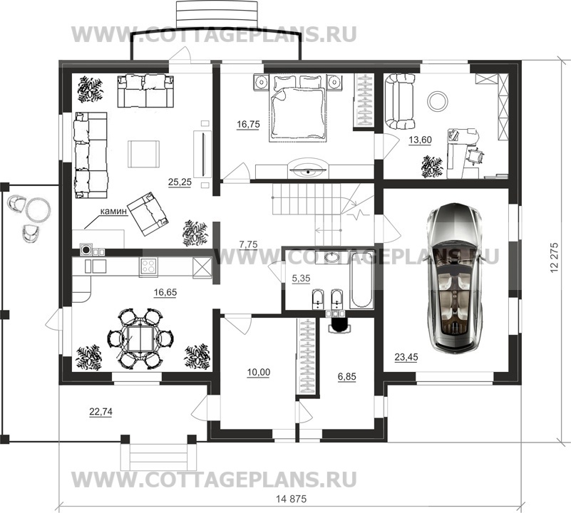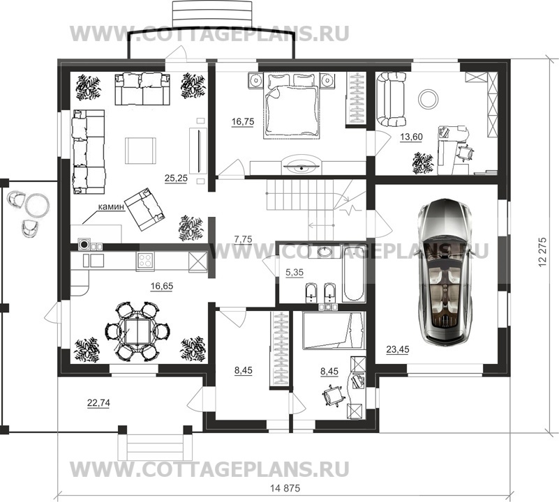 Проект дома 22-51 площадь 248.1 м2* из пеноблоков, газоблоков, двухэтажный с мансардой, с встроенным гаражом на 1 машину