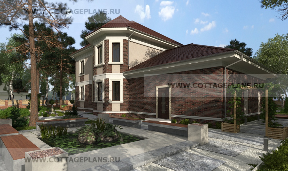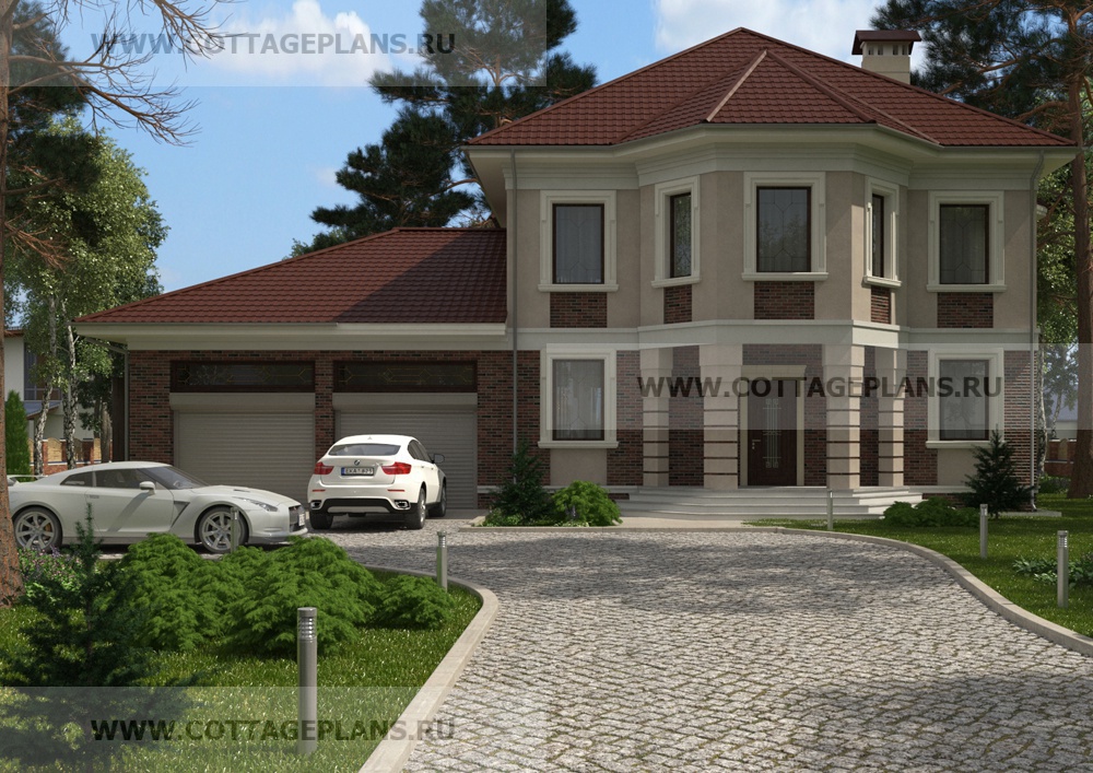 Проект дома 22-67 площадь 269.0 м2* из пеноблоков, газоблоков, двухэтажный с полноценным вторым этажом, с пристроенным гаражом на 2 машины