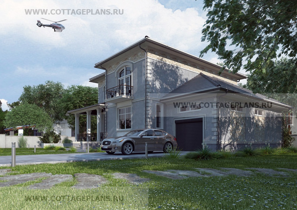 Проект дома 22-84 площадь 214.7 м2* из пеноблоков, газоблоков, двухэтажный с полноценным вторым этажом, с пристроенным гаражом на 1 машину