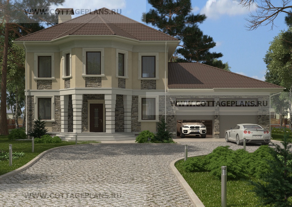 Проект дома 22-92 площадь 243.6 м2* из пеноблоков, газоблоков, двухэтажный с полноценным вторым этажом, с пристроенным гаражом на 2 машины