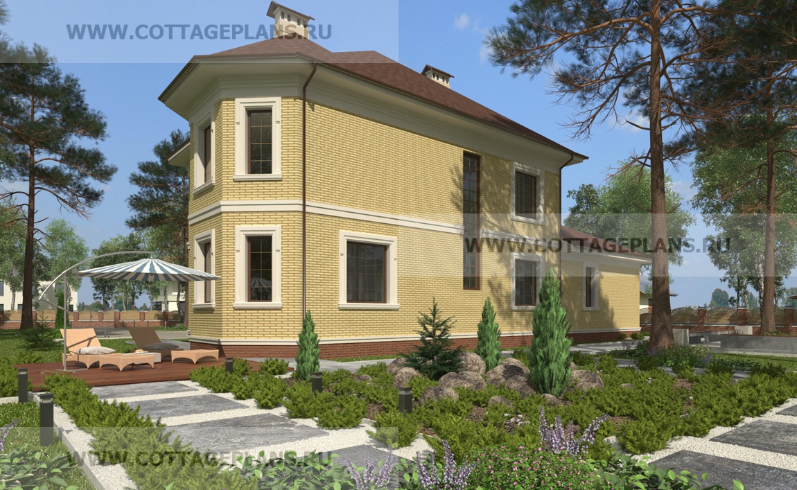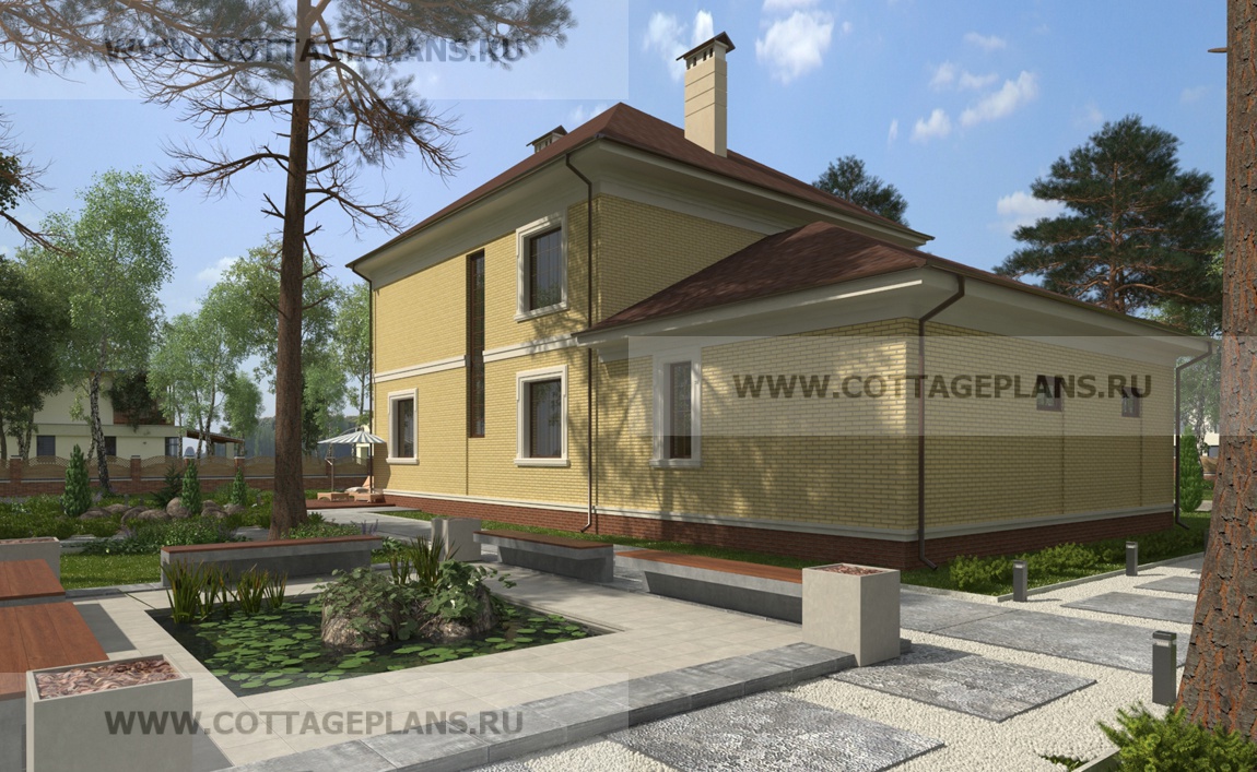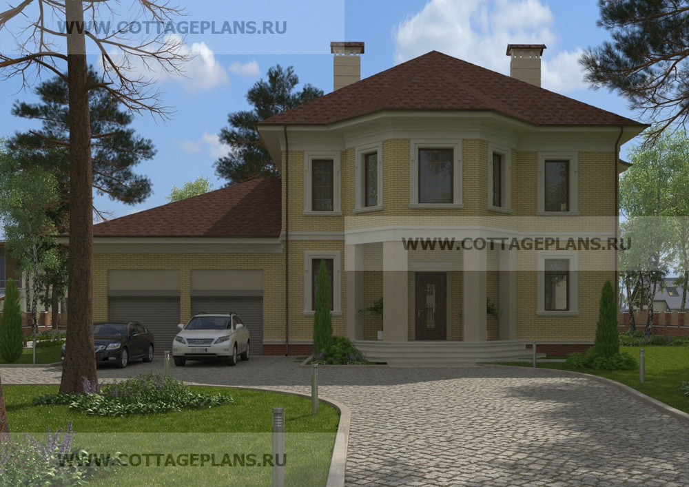 Проект дома 22-93 площадь 263.2 м2* из пеноблоков, газоблоков, двухэтажный с полноценным вторым этажом, с пристроенным гаражом на 2 машины