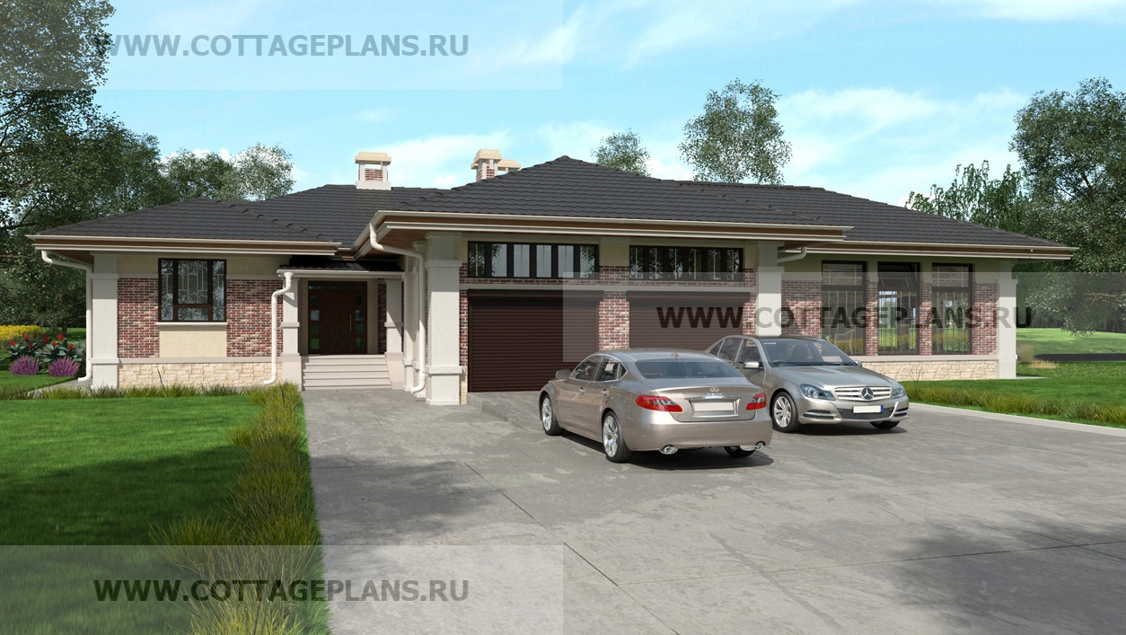 Проект дома 23-37 площадь 230.1 м2* из пеноблоков, газоблоков, одноэтажный, с пристроенным гаражом на 2 машины