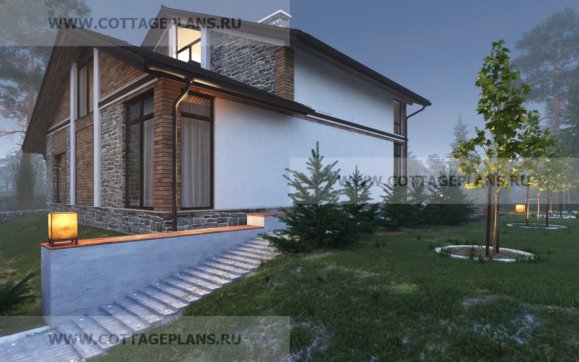 Проект дома 20-61 площадь 305.6 м2* из пеноблоков, газоблоков, двухэтажный с мансардой, с встроенным гаражом на 1 машину
