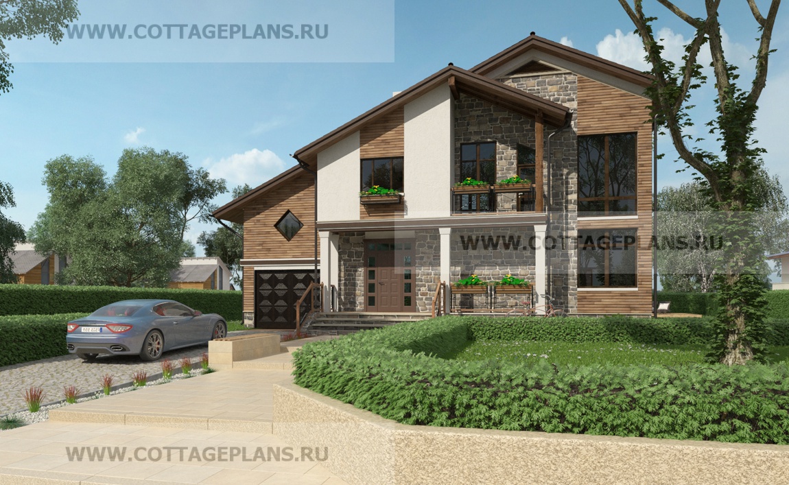 Проект дома 21-11 площадь 342.9 м2* из пеноблоков, газоблоков, двухэтажный с мансардой, с пристроенным гаражом на 1 машину
