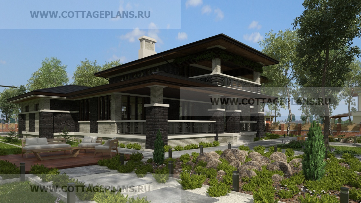 - жилых в стиле Райта с террасой