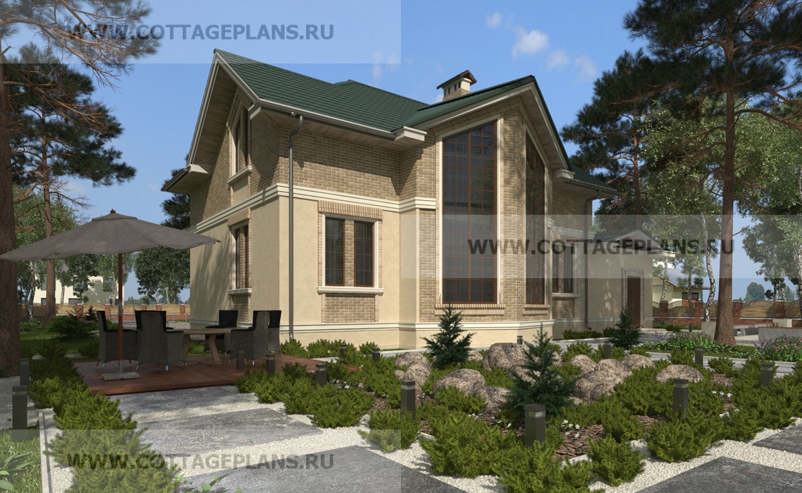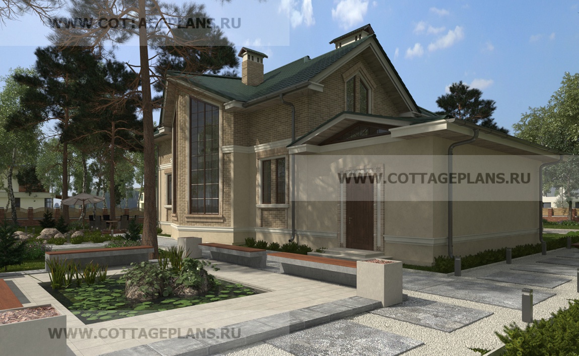 Проект дома 21-46 площадь 309.1 м2* из пеноблоков, газоблоков, двухэтажный с мансардой, с пристроенным гаражом на 1 машину