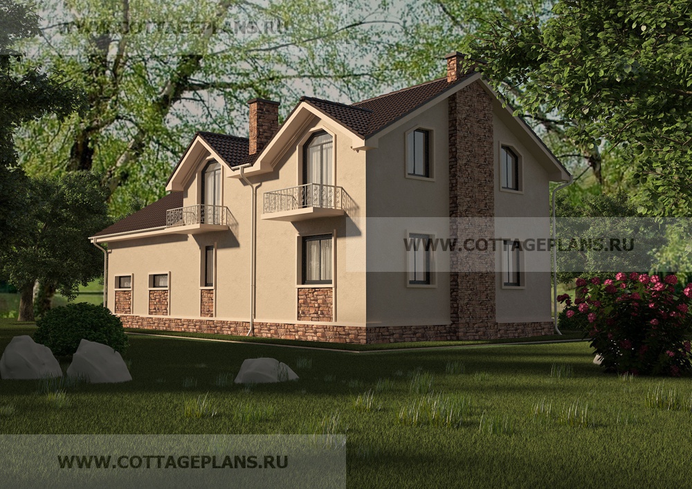 Проект дома 21-69 площадь 322.1 м2* из пеноблоков, газоблоков, двухэтажный с мансардой, с встроенным гаражом на 2 машины