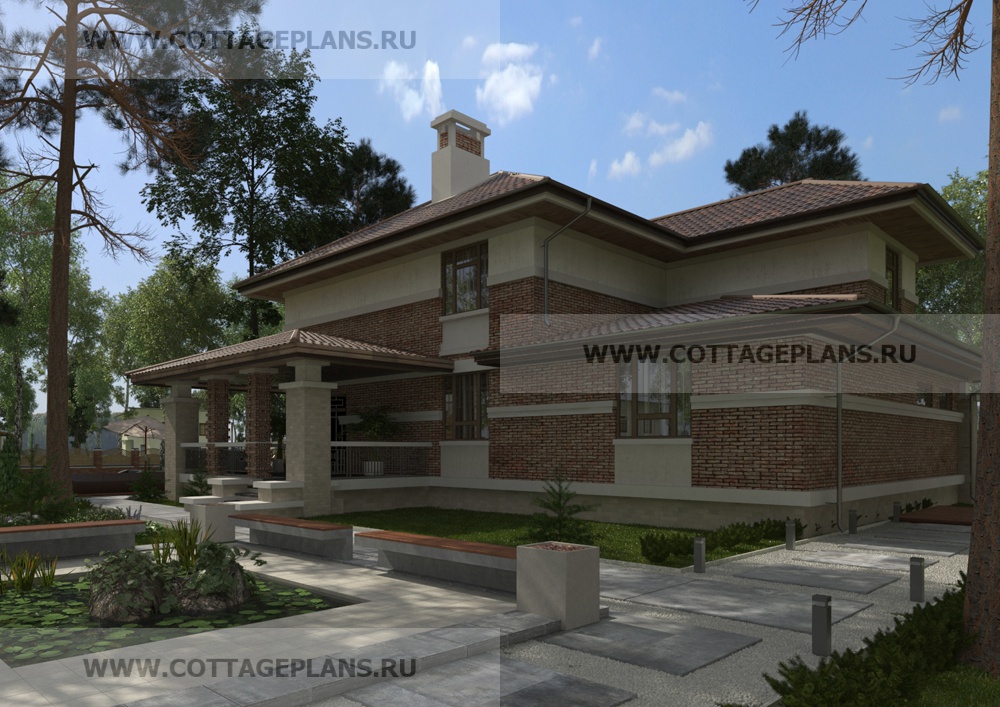 Проект дома 22-97 площадь 349.8 м2* из пеноблоков, газоблоков, двухэтажный с полноценным вторым этажом, с встроенным гаражом на 2 машины