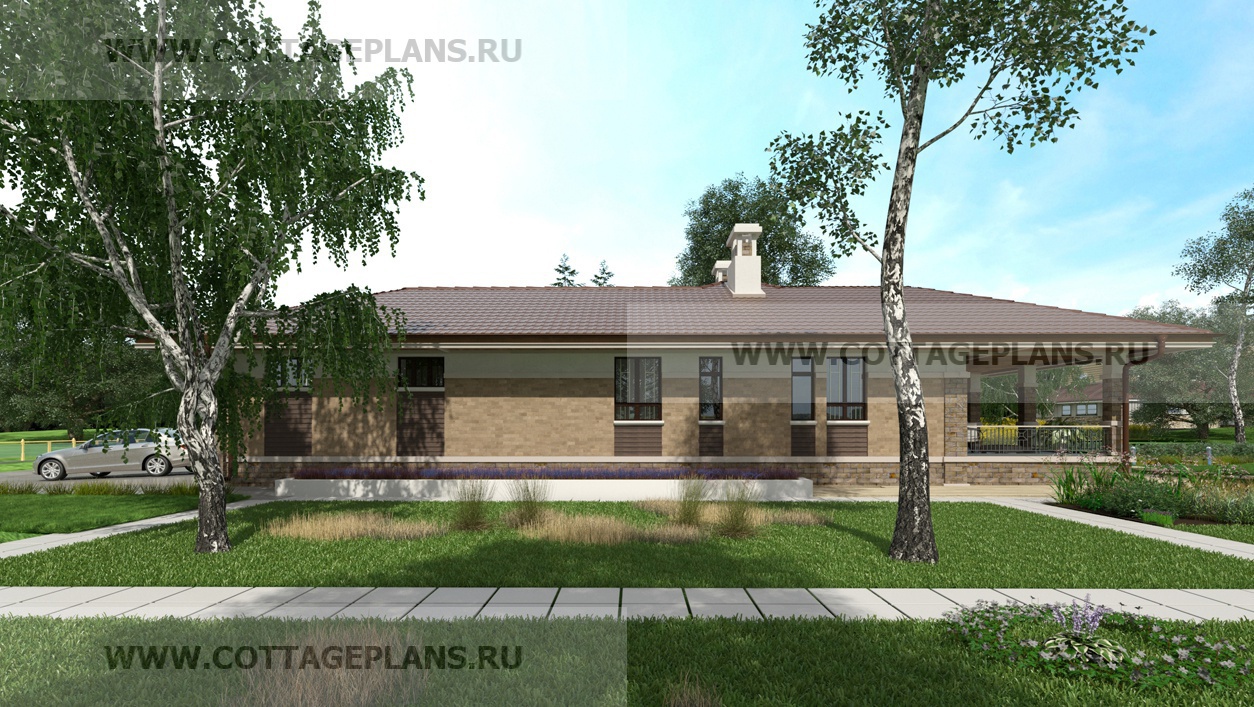 Проект дома 24-35 площадь 324.1 м2* из пеноблоков, газоблоков, одноэтажный, с пристроенным гаражом на 2 машины