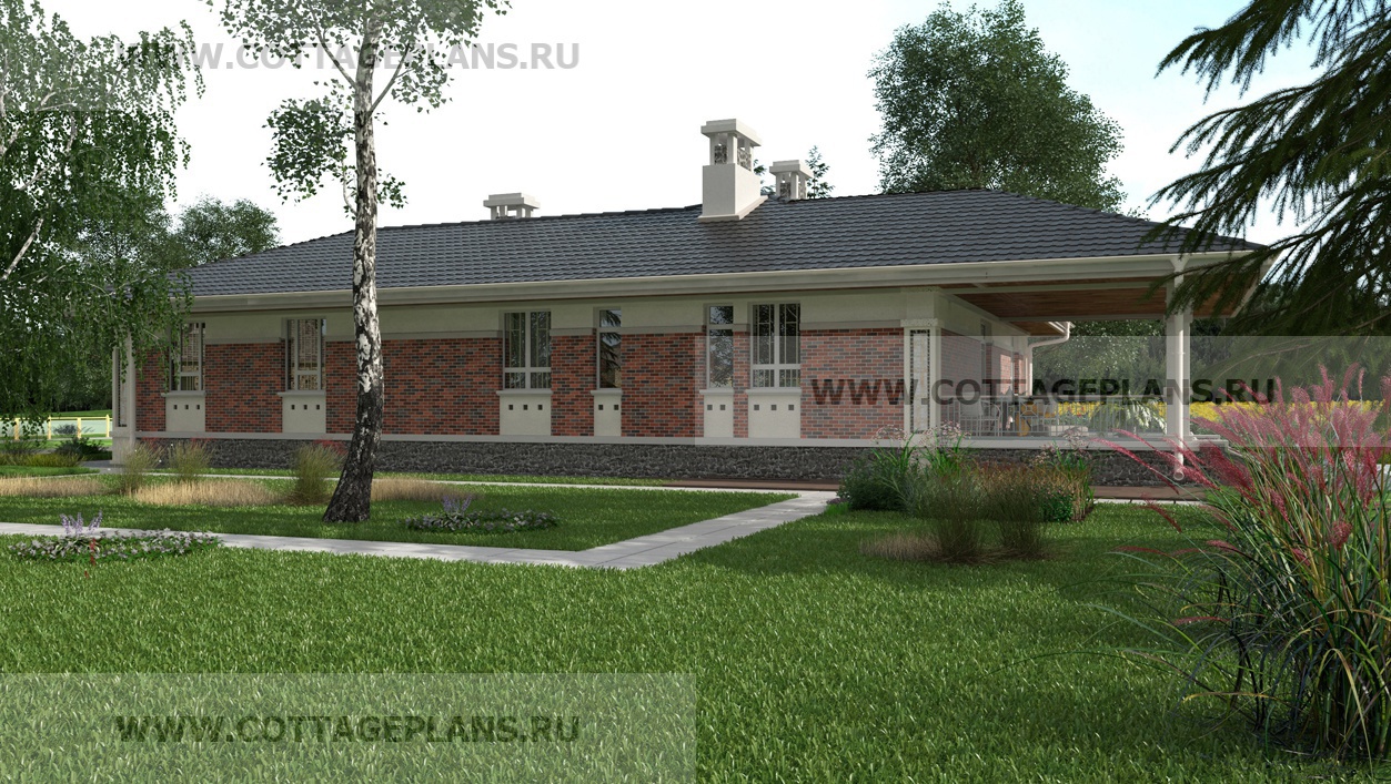 Проект дома 24-36 площадь 367.2 м2* из пеноблоков, газоблоков, одноэтажный, на две семьи родители и дети, с неравными частями