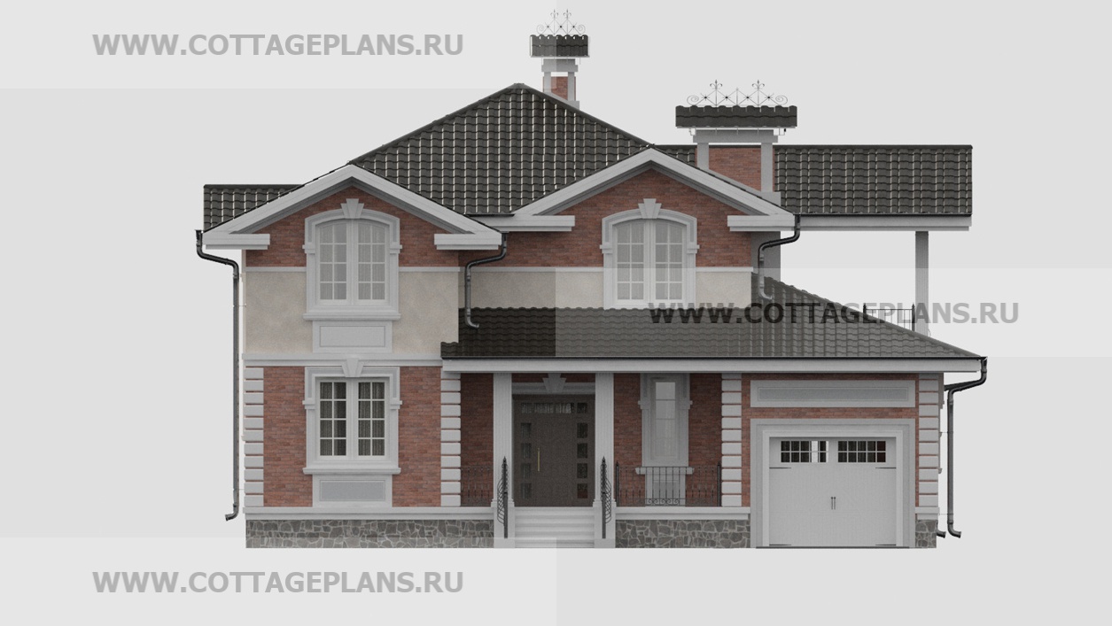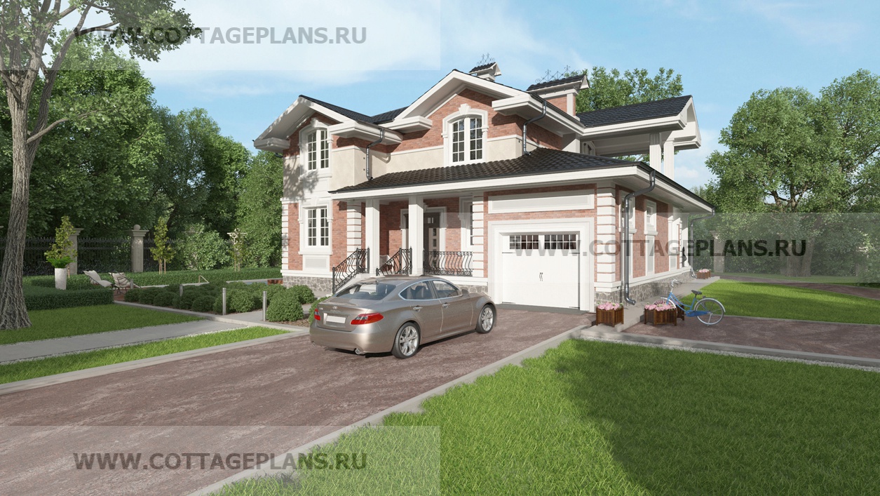 Проект дома 24-79 площадь 334.9 м2* из пеноблоков, газоблоков, двухэтажный с полноценным вторым этажом, с пристроенным гаражом на 1 машину