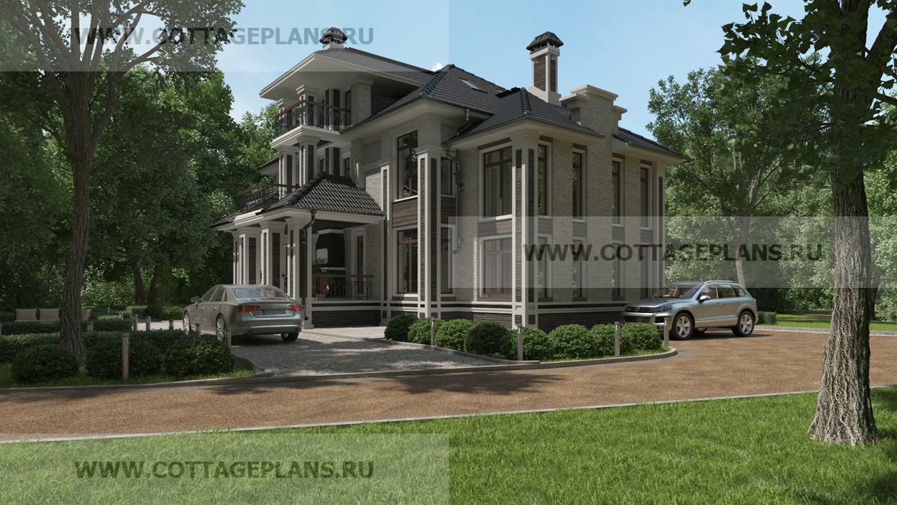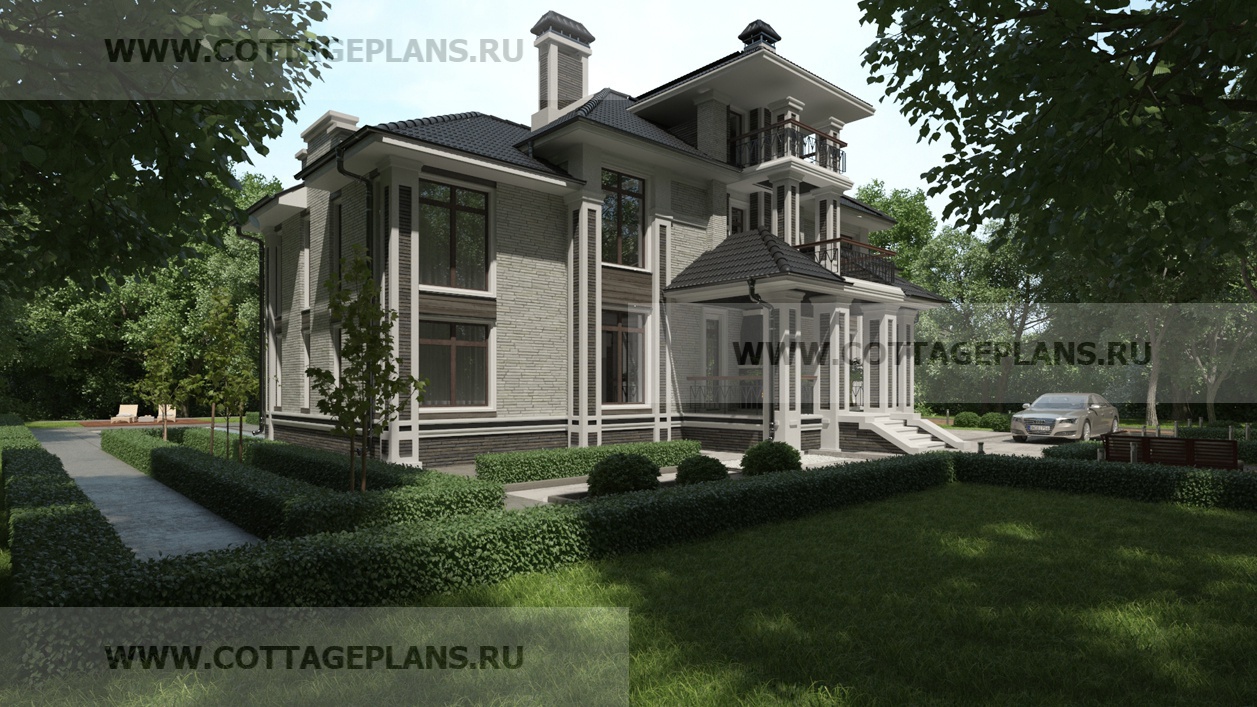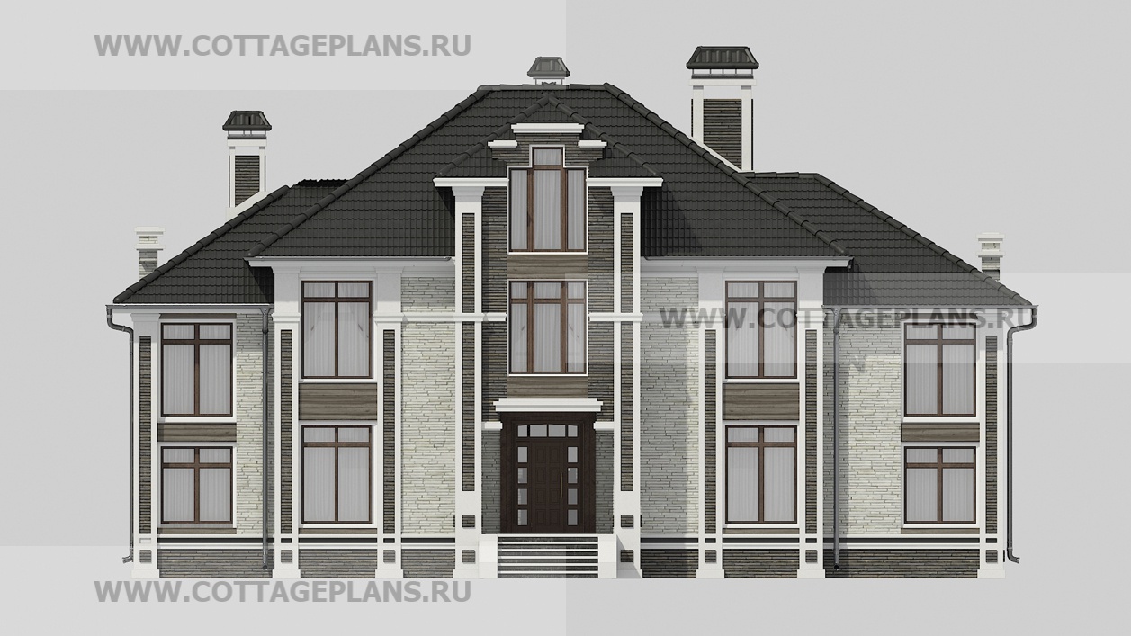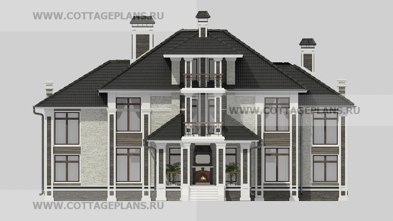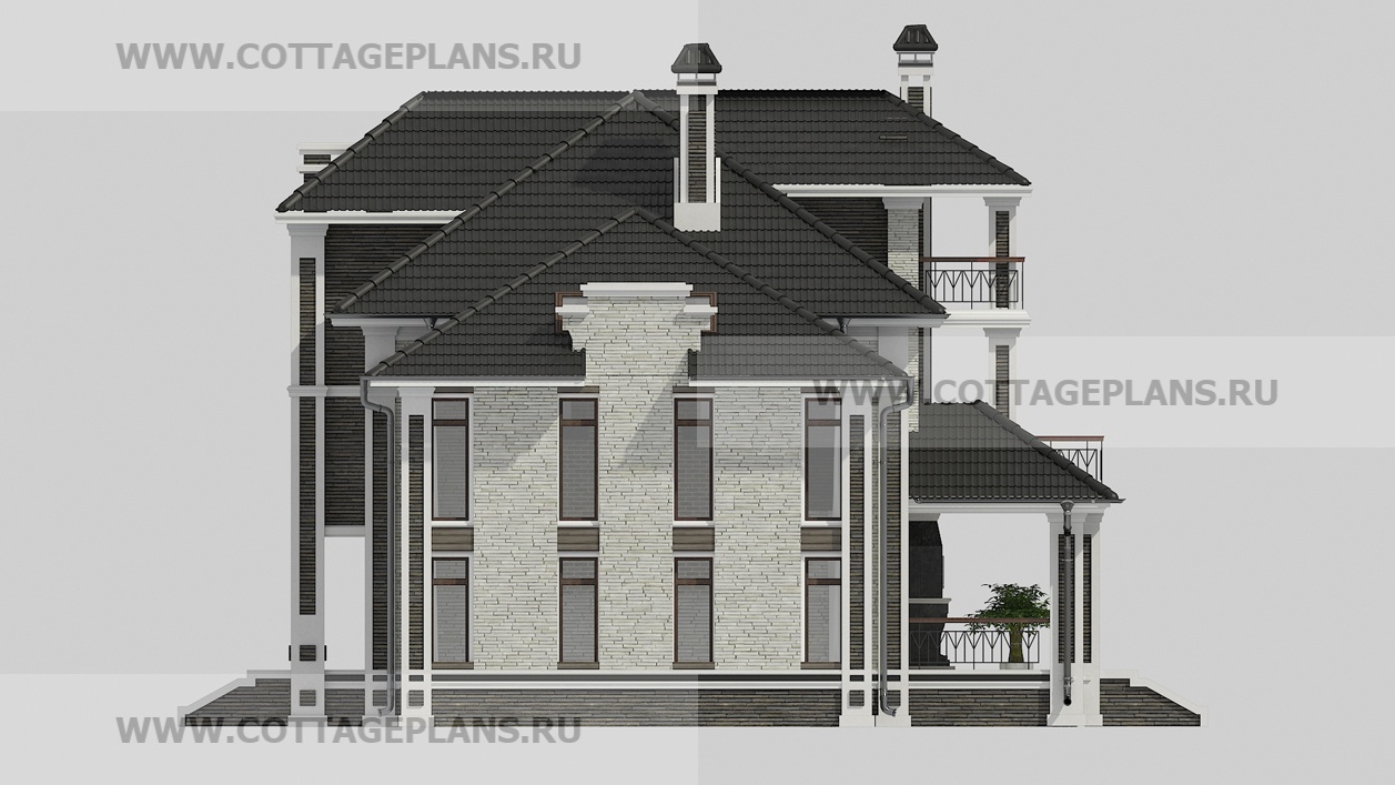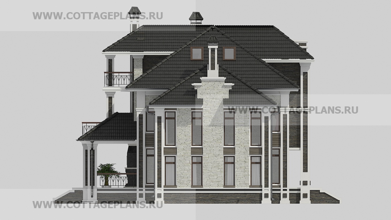 Проект дома 29-88 площадь 342.8 м2* из пеноблоков, газоблоков, трёхэтажный с мансардой, с семью спальнями