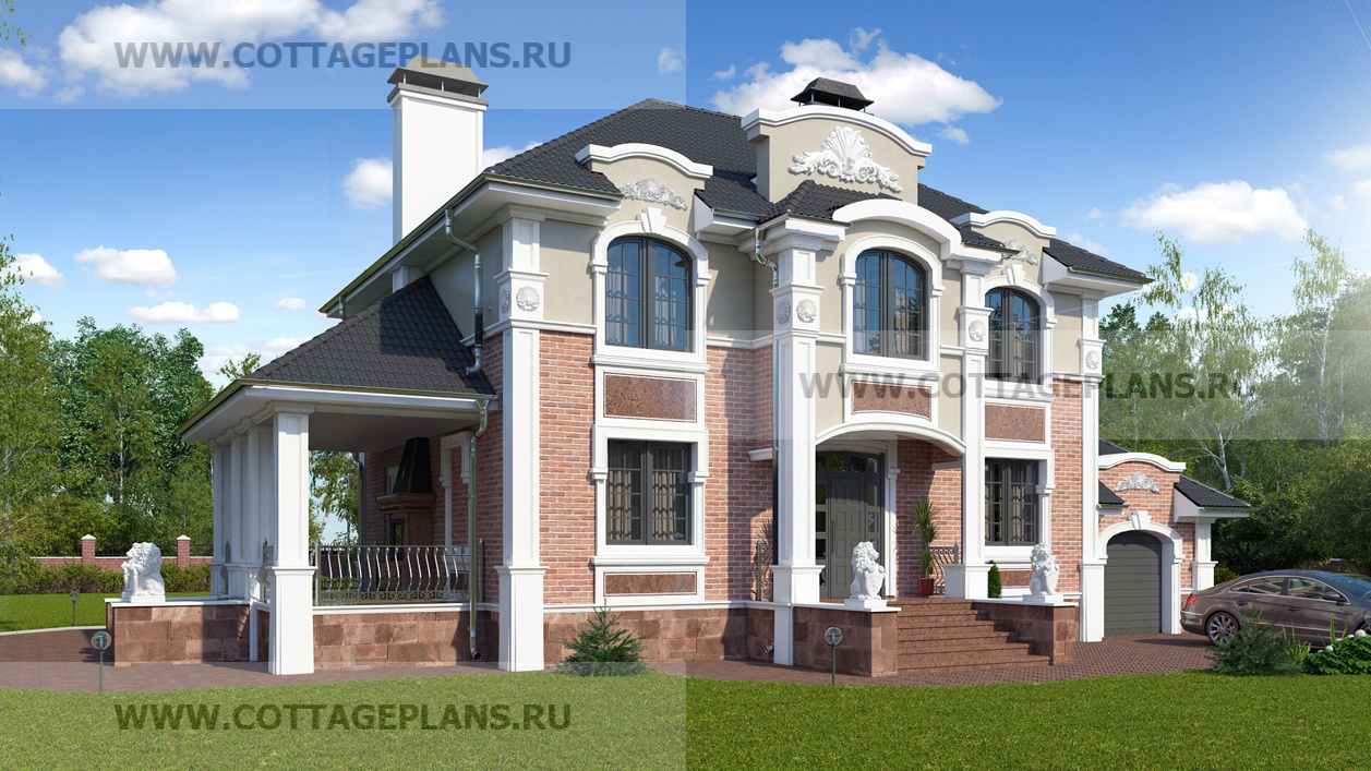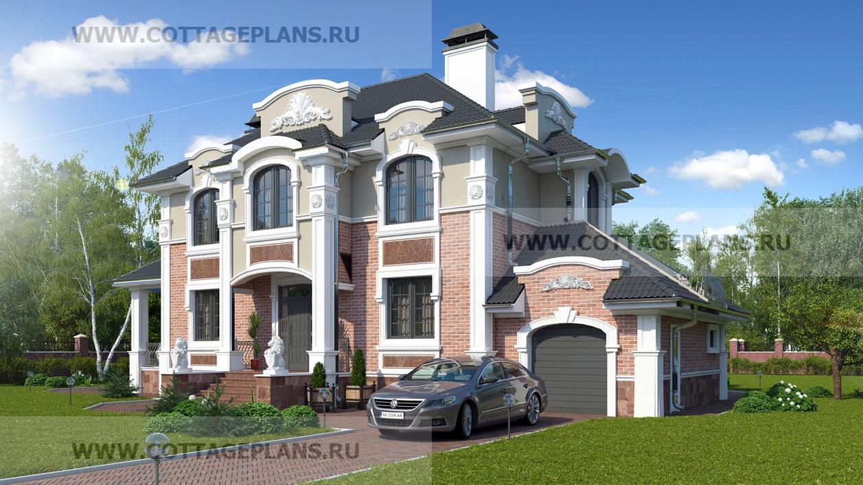 Проект дома 71-11 площадь 339.8 м2* из пеноблоков, газоблоков, двухэтажный с полноценным вторым этажом, с пристроенным гаражом на 1 машину