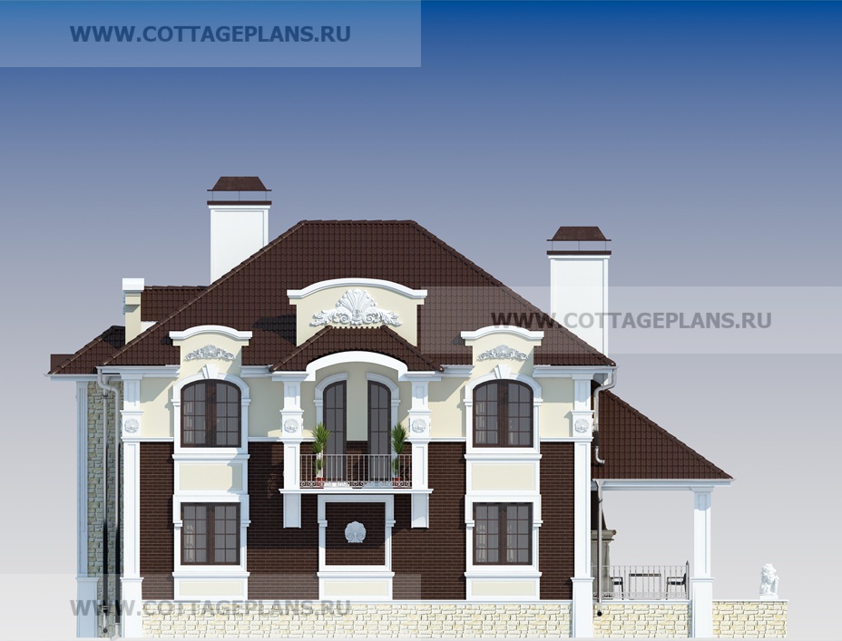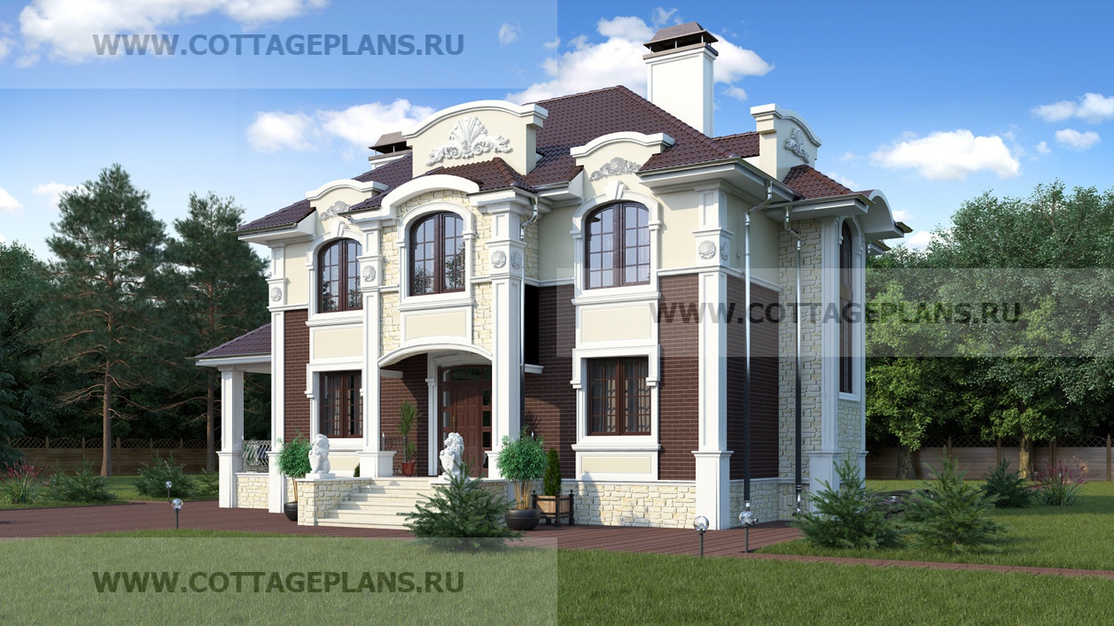 Проект дома 71-12 площадь 308.9 м2* из пеноблоков, газоблоков, двухэтажный с полноценным вторым этажом, с цокольным этажом