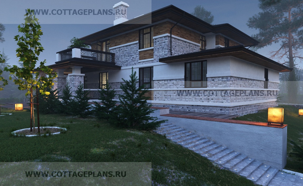 Проект дома 21-57 площадь 476.8 м2* из пеноблоков, газоблоков, двухэтажный с мансардой, с пристроенным гаражом на 2 машины