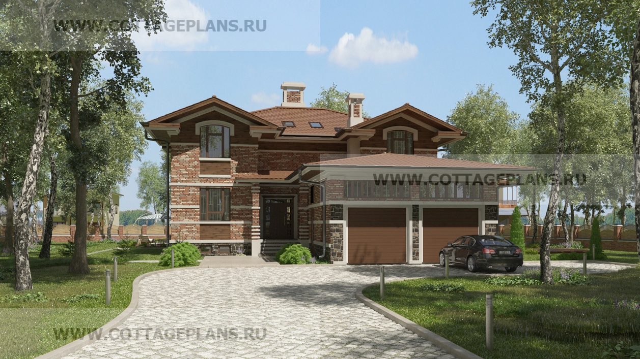 Проект дома 24-59 площадь 440.7 м2* из пеноблоков, газоблоков, двухэтажный с мансардой, с пристроенным гаражом на 2 машины