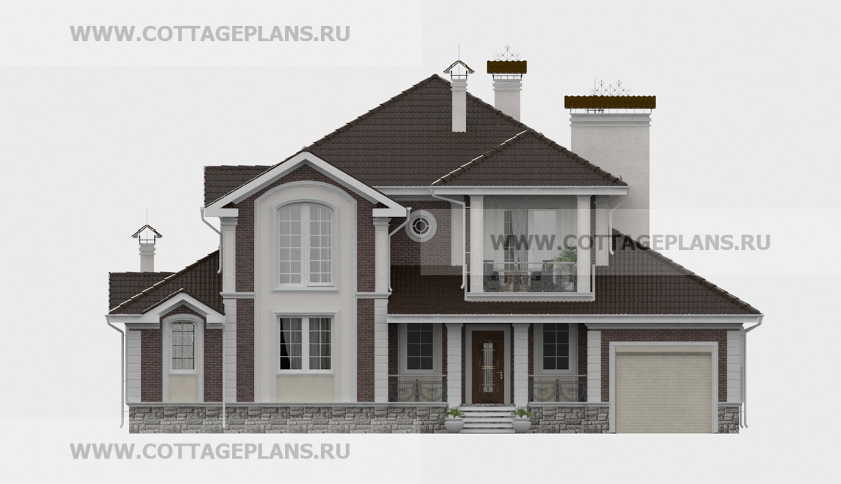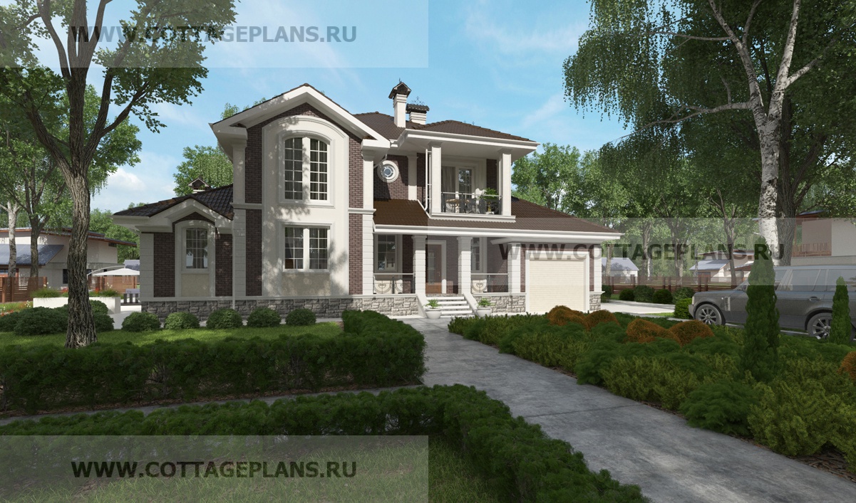 Проект дома 71-38 площадь 467.0 м2* из пеноблоков, газоблоков, двухэтажный с полноценным вторым этажом, с пристроенным гаражом на 1 машину