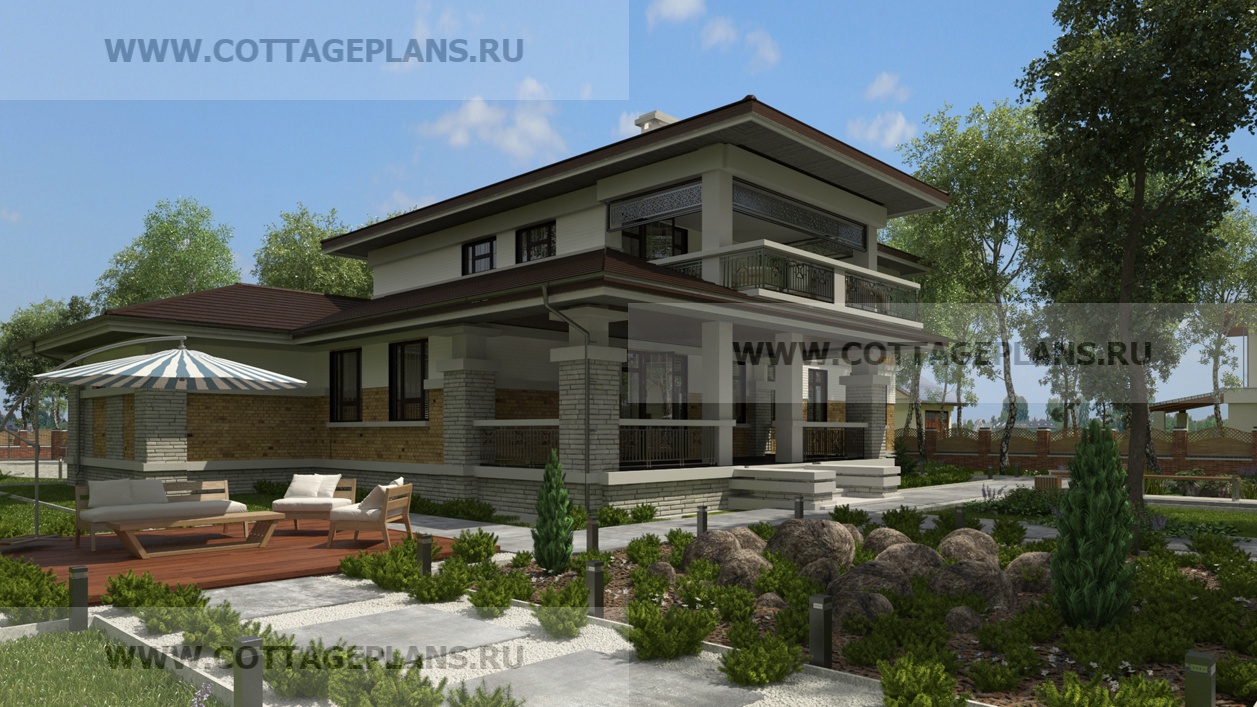 - жилых в стиле Райта с террасой