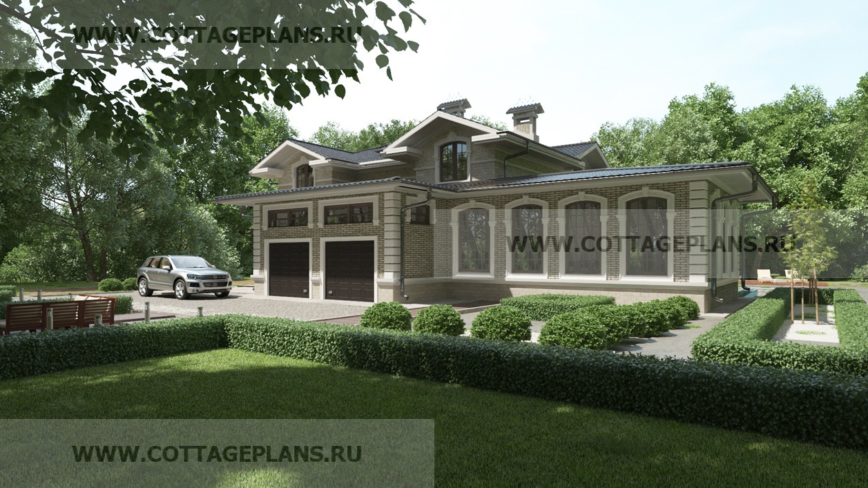 Проект дома 24-73 площадь 562.0 м2* из пеноблоков, газоблоков, двухэтажный с мансардой, с пристроенным гаражом на 2 машины