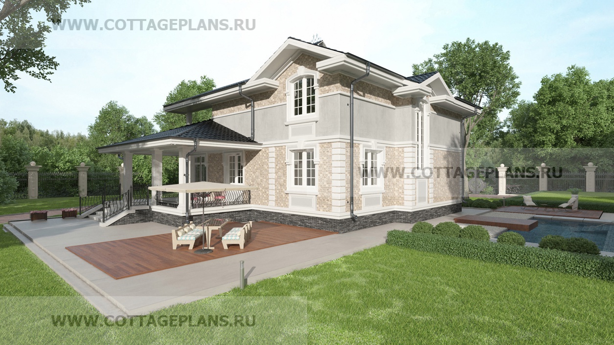 Проект дома 13-56 площадь 176.6 м2* каркасный, двухэтажный с мансардой, с пятью спальнями
