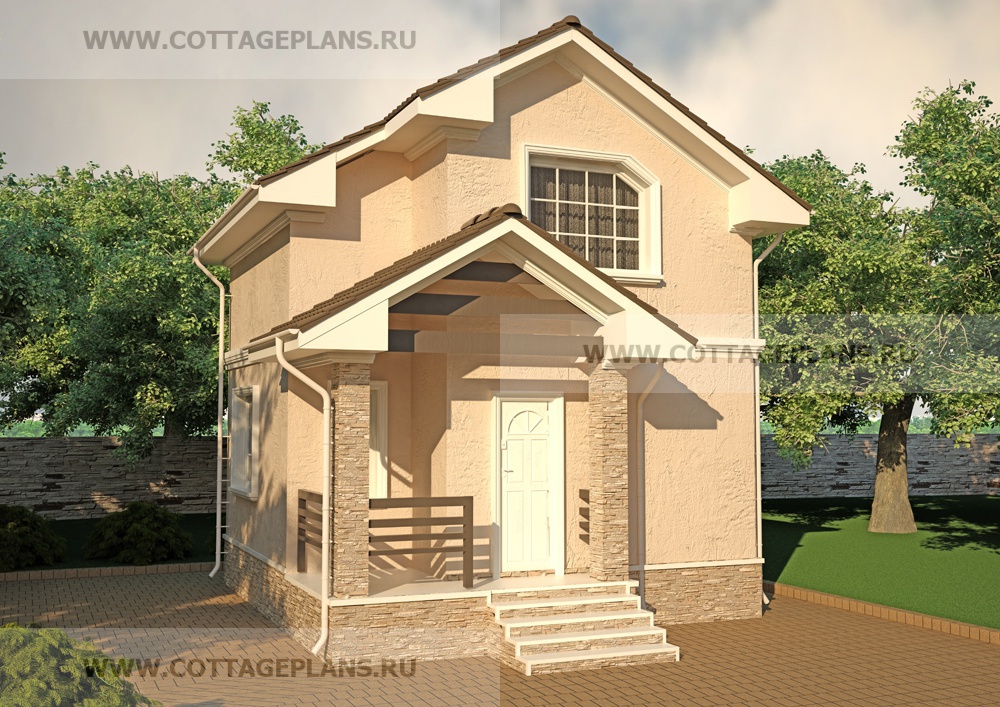 Проект дома 14-12 площадь 71.0 м2* каркасный, двухэтажный с мансардой, с двумя спальнями